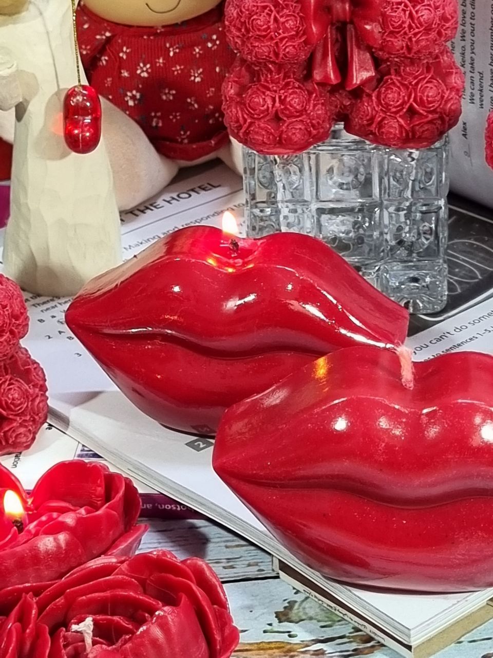 شمع لب ولنتاین خاص با پارافین موم عسل ۱۲ سانت۹۰٬۰۰۰ تومان