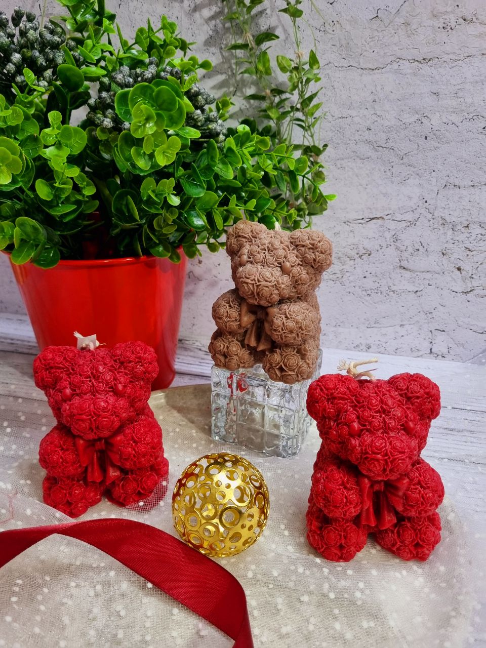 شمع تدی پر گل رز در رنگ صورتی وابی با قیمت مناسب از تولید کننده تضیمن گیفیت