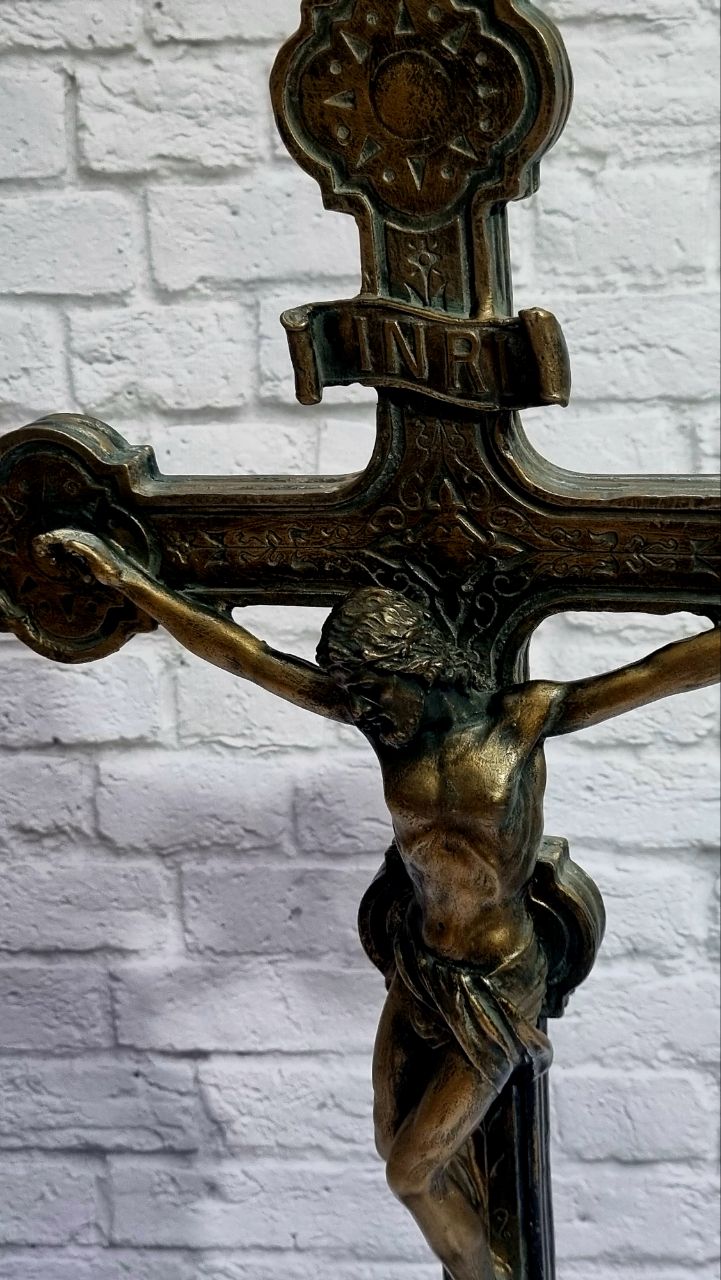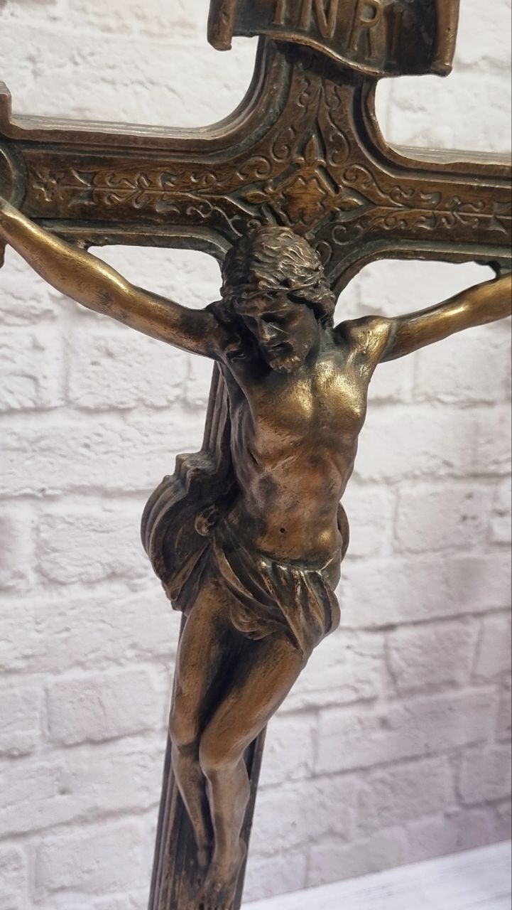 مجسمه رومیزی صلیب با سبکی کهنه وقدیمی برنز ارتفاع ۵۷ سانت