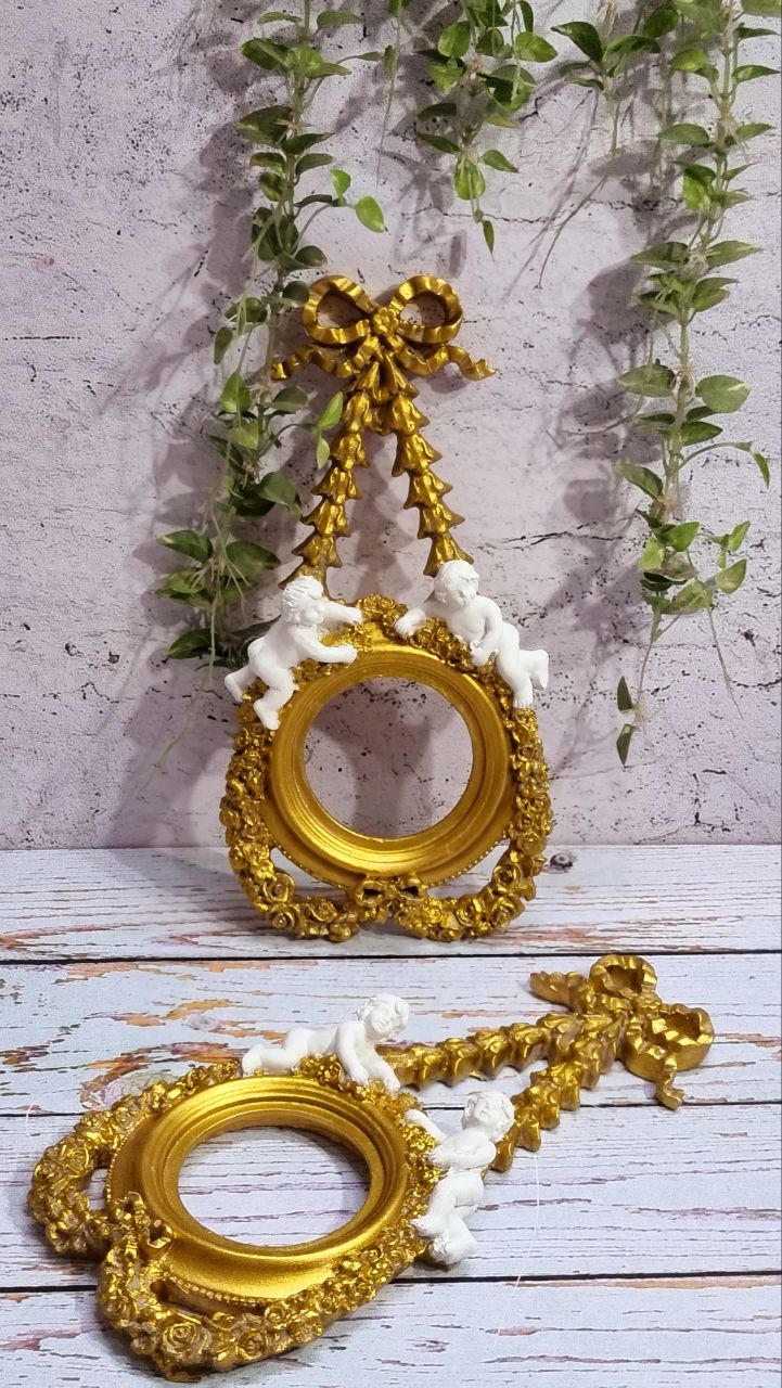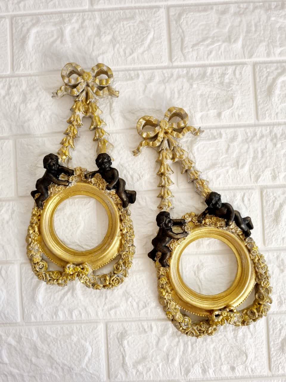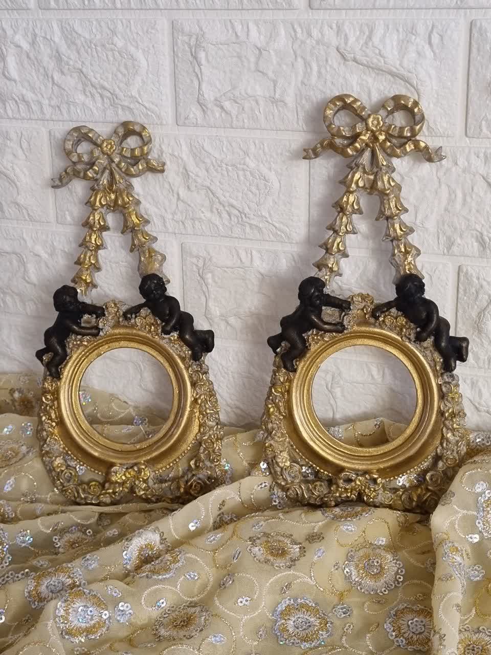 قاب دیواری فرشته سبک سلطنتی با ورق طلا اجرا شده ابعاد ۱۴×۲۷